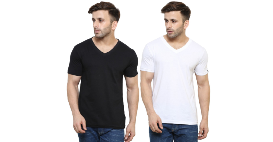 Another combo which I am recommending is of v-neck t-shirts.The colours are somewhat same with the previous two combos so you can buy either of the above and this combo.Don’t buy all the three combos as the colours are similar.I would recommend you this combo if you wanna look slim.V-neck is best for them who wants to look fit and it makes you look sharp.BLACK and WHITE.